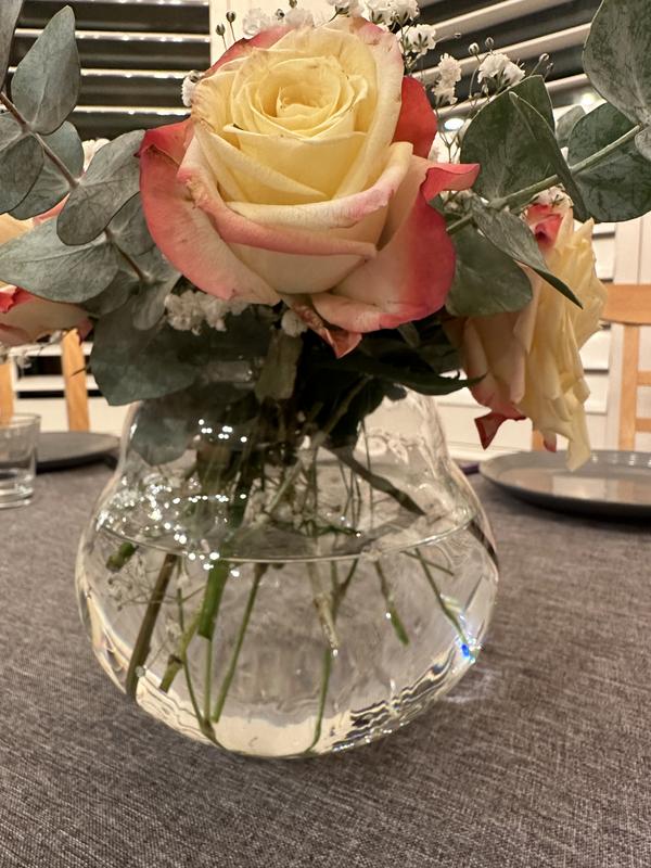 I bought this as a gift for a friend who grows roses. She'd been looking for a rose bowl and when she received this vase she just loved it! The roses look beautiful in the vase and the fact that it can be used as a hurricane lamp as well is a big plus.