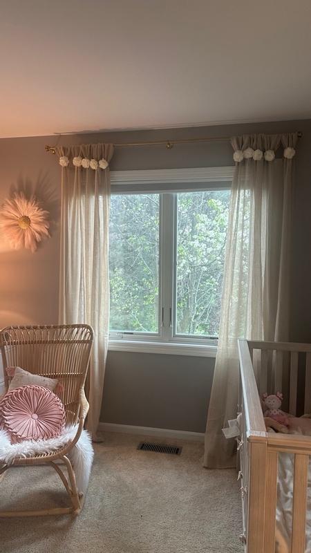 I really liked this curtain a lot. The color and the cute flowers that pin to the top are adorable. Made of very good material, it’s not soft feeling it’s rough feeling which I like. I plan on hanging these in my guest bedroom as there is only one curtain and I only have one window in there that it will fit!