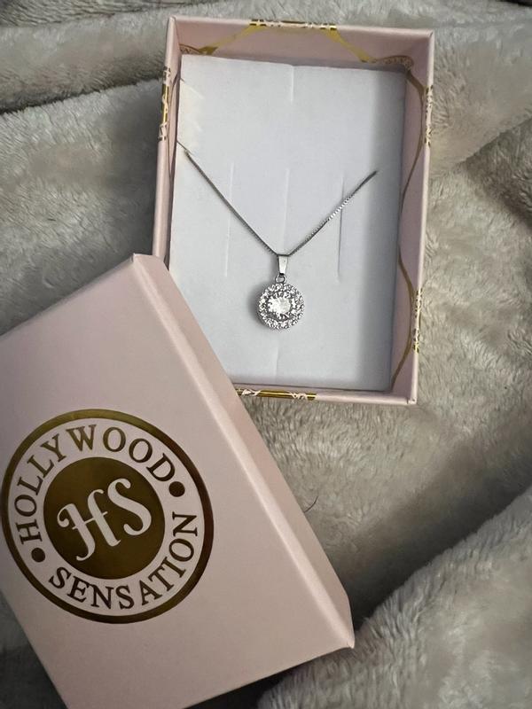 This necklace is stunning! It looks even better in person than it did online. The crystal pendant catches the light beautifully and the chain is the perfect length. I highly recommend it!