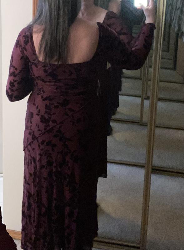 Just what I was looking for. I am not a girly girl dress kinda gal. I have been on the hunt for several weeks for a mother of the groom wedding dress. I needed something nice but something I can feel comfortable (and warn) in for an outdoor snowy winter wedding. I can wear leggings and tall boots with this dress and it looks great. I will be able to move with ease and feel comfortable. Just for reference, The dress gives a nice slender look on my 5’10, 190lb frame. It has good stretch. in the store I tried on a medium and it actually fit everywhere but was kinda snug in the shoulder area. I ordered the large and it arrived in a few days. It was the perfect fit. Thank you Macy’s for the win.