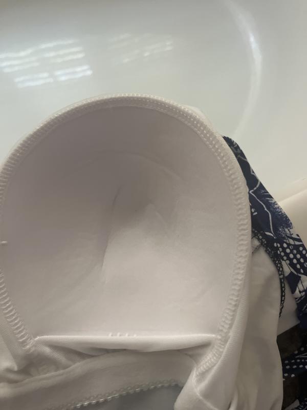 The bra portion of this suit has debts in the cups that make it feel uncomfortable. The suit is cute but a bit matronly. It’s ok for my pool but probably won’t wear in public.