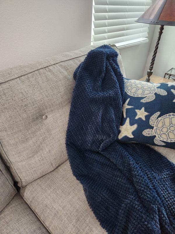Love the feel. Very soft and plush throw. Bought this for my TV room. Now I need more of them for others. :)