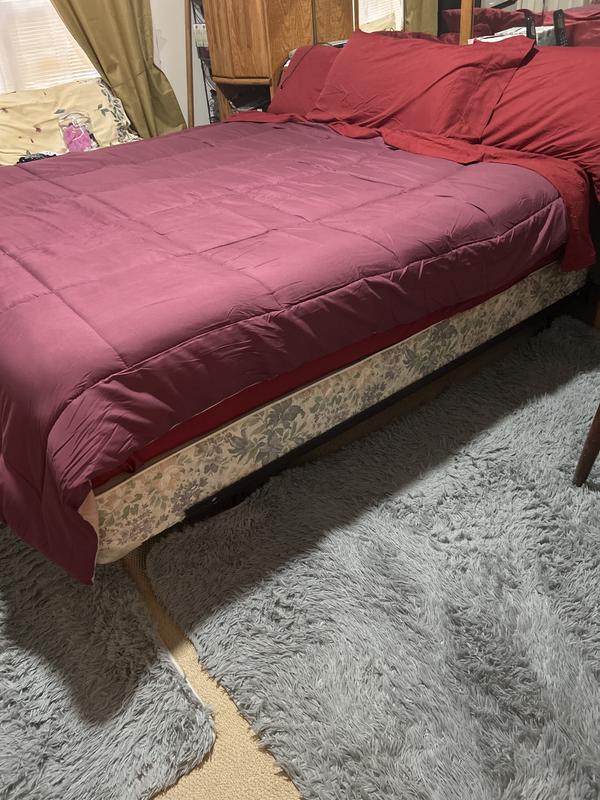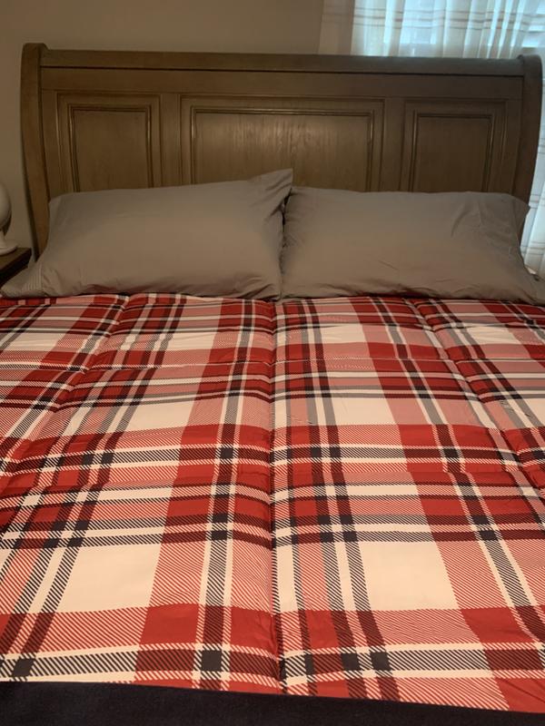 This comforter looks and feels nice. I am glad that I purchased the King size for my son’s queen size bed. It fits well.