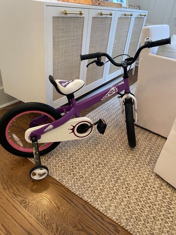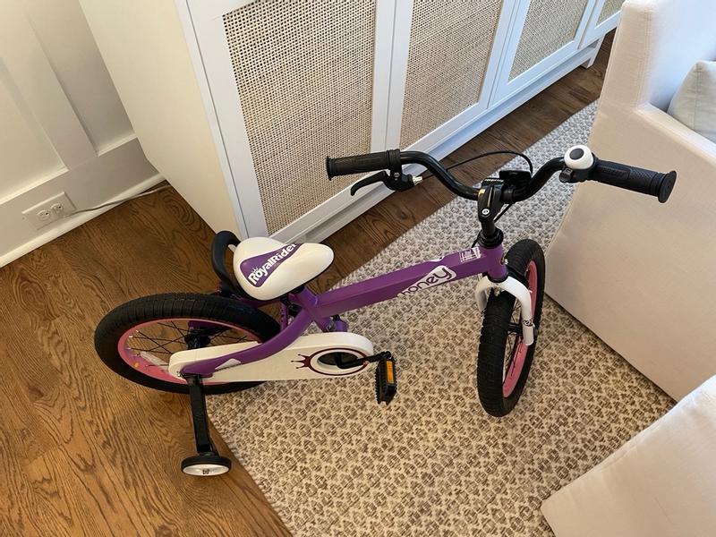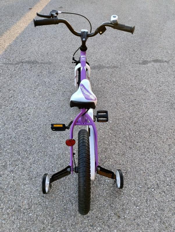 Nice design bike nice safety features, looks durable ,easy to assemble love it nice purple color with pink i love the seat & training wheels design & ring bell on it we love it thank you.