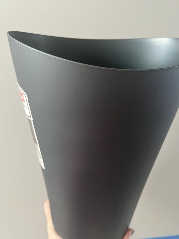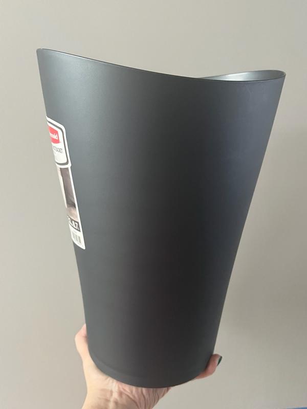 This Rubbermaid open top wastebasket is really nice. It's heavier than other types I've had, and I like the opacity and minimalistic design. It's a nice size overall, the perfect height and width to fit where I placed it. It seems well made enough to last a long time, and that's a plus with me.