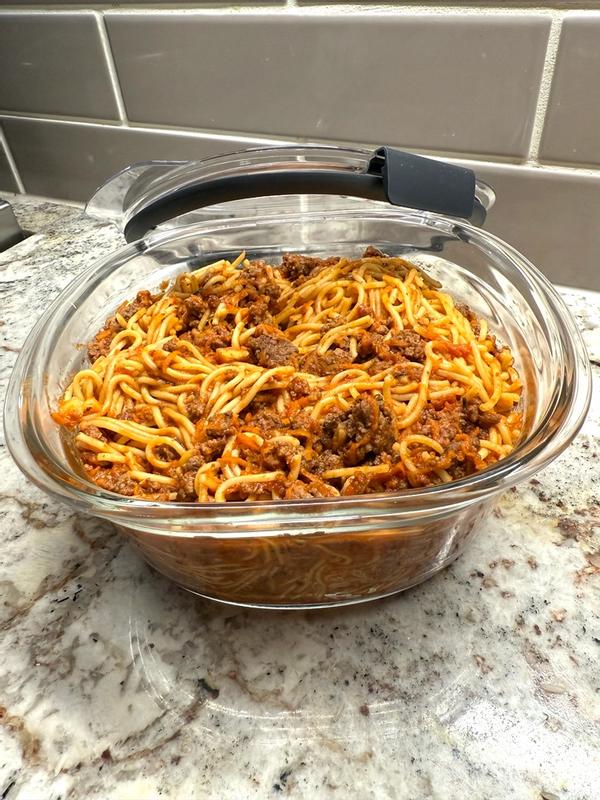 I added this round container to my existing Rubbermaid rectangle storage containers and love the amount of food it stores! I find myself opting for it over their large rectangle because the “round” shape still fits easily in the fridge.