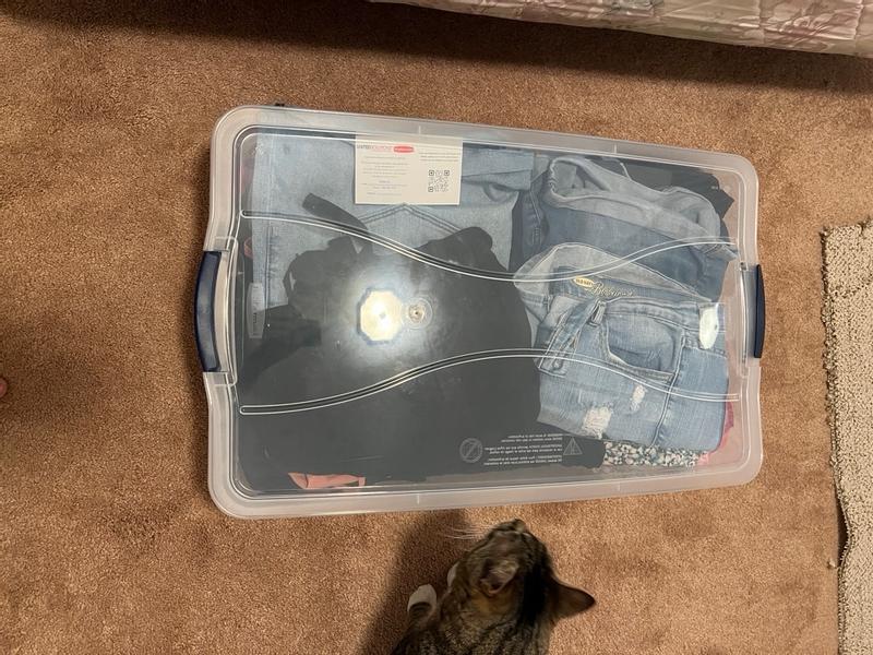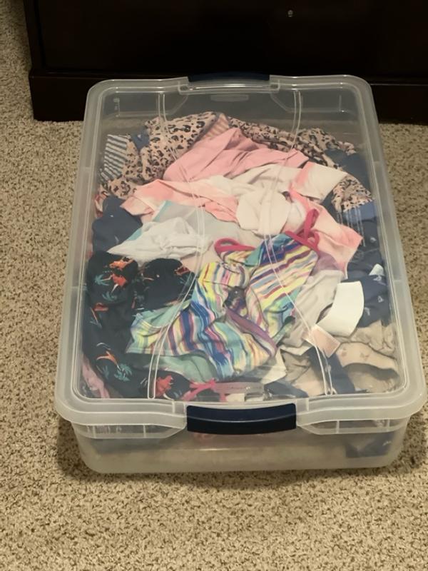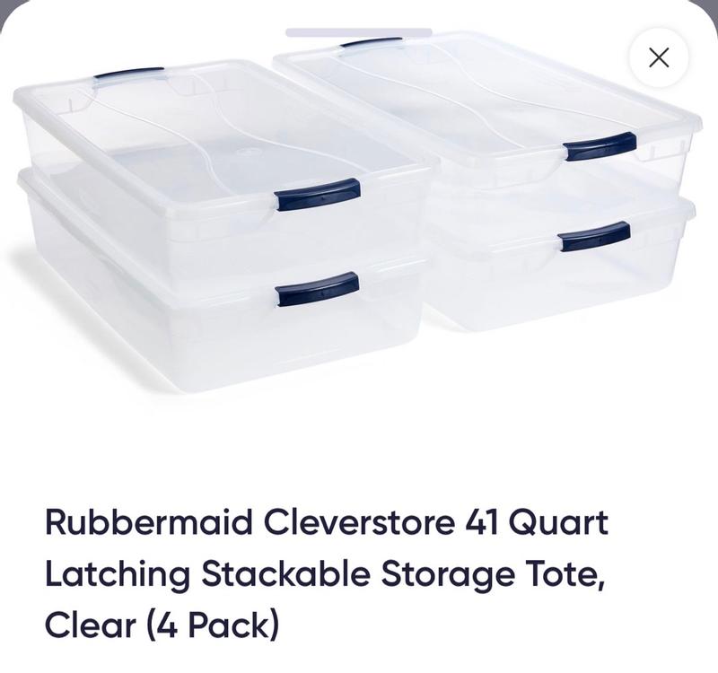 These Rubbermaid Cleverstore latching bins are perfect storage for under the bed, in a closet, or in the basement. They are a great depth (taller than a typical slim storage bin) but not too tall. They also stack nicely for compactness and stability. Seal nicely and will work great for clothes, holiday decorations, or miscellaneous items. I also like that they are clear so you can see what is inside of them without opening it up! No odor like some plastic storage containers have. I also think they would work nicely for outdoor storage in the garage as they seal fairly well. Would recommend and buy more!