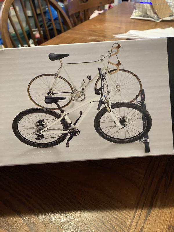 I wanted to hang my son and I bikes. I figured it would be a pain to do, well I was wrong this Rubbermaid fast track bike rack was easy to set up and holds and hooks bikes very easily and now my bikes are off the ground and no longer falling over. I would highly recommend this set.