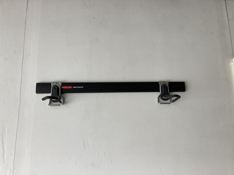 The only thing I don't like is that I didn't get the rubbermaid fast track garage 3-peice bike storage with 32" rail and two vertical hooks sooner. It wasn't difficult to install and it seems plenty sturdy.