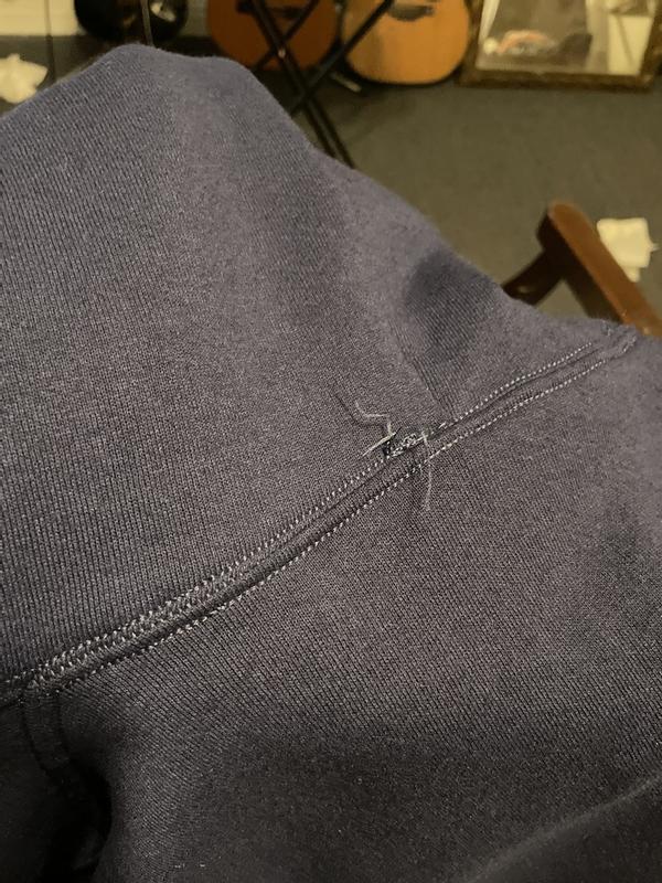 I'm disappointed in the quality of my black Heather hoodie that I recently purchased. I wore it and happened to look down and saw that my hoodie had come apart in the seam on my arm.