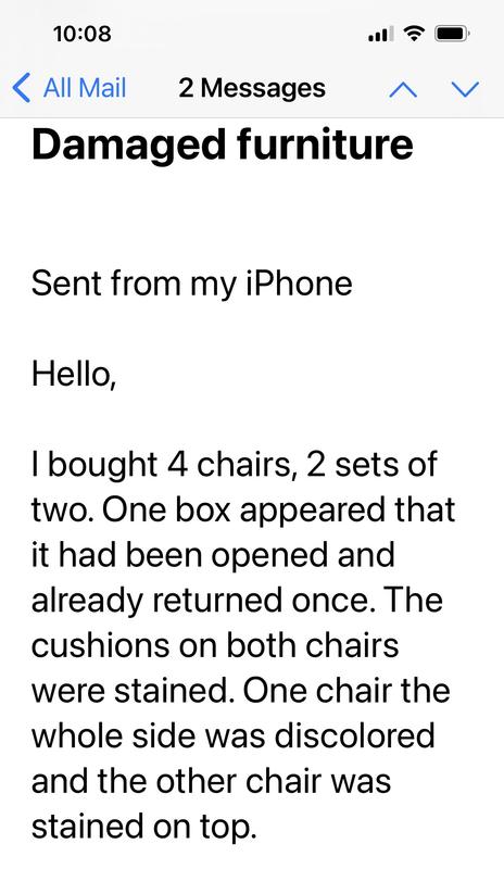 Awful! Two chairs are damaged which nobody got back with me. Chairs are not stable, can’t even sit in them without wobbling and feeling like they are going to break. Very poor quality!