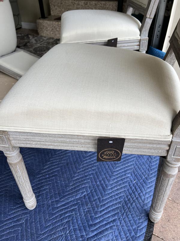 Our chic and beautiful set of 2 dining chairs is upholstered in a linen fabric that is soft to the touch, making it ideal for long dinners with family and friends. The antique brushed wood finish gives it a rustic look.