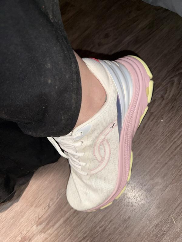 2nd pair of Ryka sneakers. Terrible materials, and these were uncomfortable in the arches. I couldn't return my previous purchase because I wore them once and they got scuffed just walking to the car to sit down. Don't even know how it happened but it could not be buffed out. These will be returned.The only pro was the width. I will NOT be buying any other pairs from this company in the future, even if they are on sale.