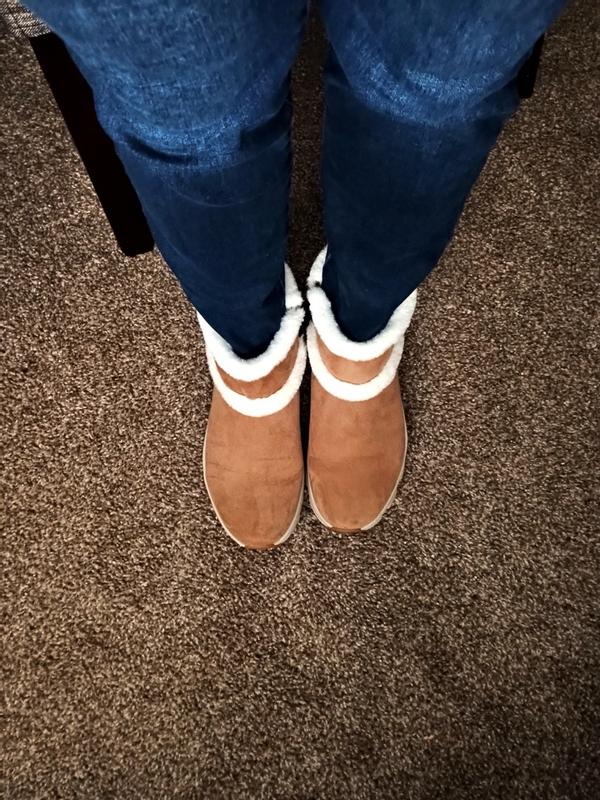 I do like these casual boots and I think they are cute. Love the essential inside zipper to make getting them on and off easier. Also, the footbed is very spongy which I like, as well as the little fur detail. I did knock off a point because of the seam that goes around the top front of the boot. I noticed that when I wore ankle socks, the thick seam on the top of my socks conflicted with the seam on the top of the shoe and caused pressure/discomfort by the end of the day. So I only wear full socks with these boots now which is a perfect solution. I would still recommend these boots, while suggesting that you wear the right socks! Brown is in fashion this year (2025), and I realized that I don't need to wear black shoes all the time with my black clothes. I have since bought a brown handbag and plan on wearing these shoes and my new handbag with my black outfits as well as with jeans. Can't beat the price, either! The only extra comment I have is that this may not be a good boot for people with a narrow feet. Although I'm a medium width, my toes are spread out because I haven't worn heels for decades, and the toe box still seems a bit roomy on me.