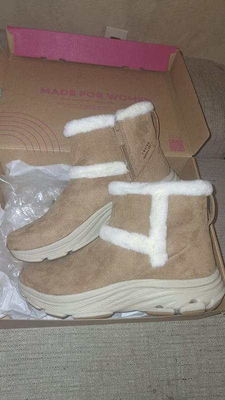 My feet require me to wear cushion shoe, this was excellect in supporting my feet, I ordered a size up but when it came it wasn't necessary for be to size up because it was big and roomy, so my normal size would have work, but couldn't bother to returned it. wore it in freezing tempertures and snow it kept me warm. I gave it a 4 star because I should have order the black the other color get soiled easily.