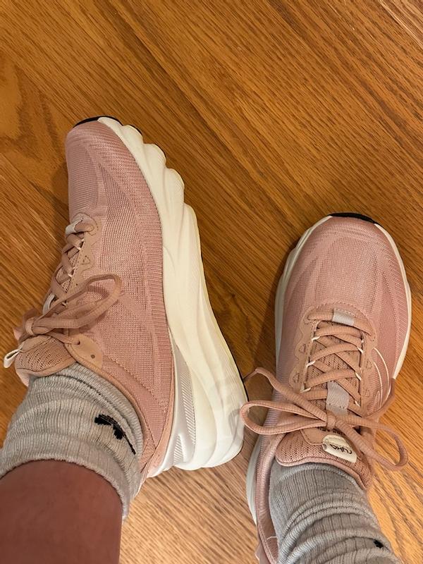 Feels like I’m walking on clouds. So soft and springy. These running shoes have so much bounce it makes it easier to run and not feel foot discomfort. I have a high arch and they fit perfectly. True to size. Comfortable to wear and easy to bounce around in. Might be my new favorite pair of running shoes.