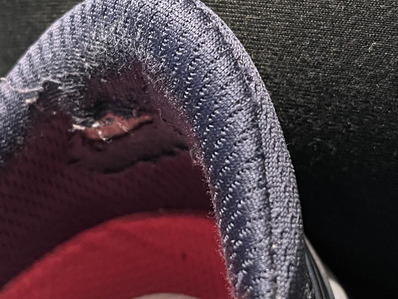 This is the 3rd and last pair of Rykas I will order. I received these 9/24/25 and have walked for an hour 4-5 days a week, so about 18 hours in the shoes give or take. And this is the inside of the right shoe. Has happened with every pair. I’m sorry it took me 3 tries to realize this is not the shoe for me.