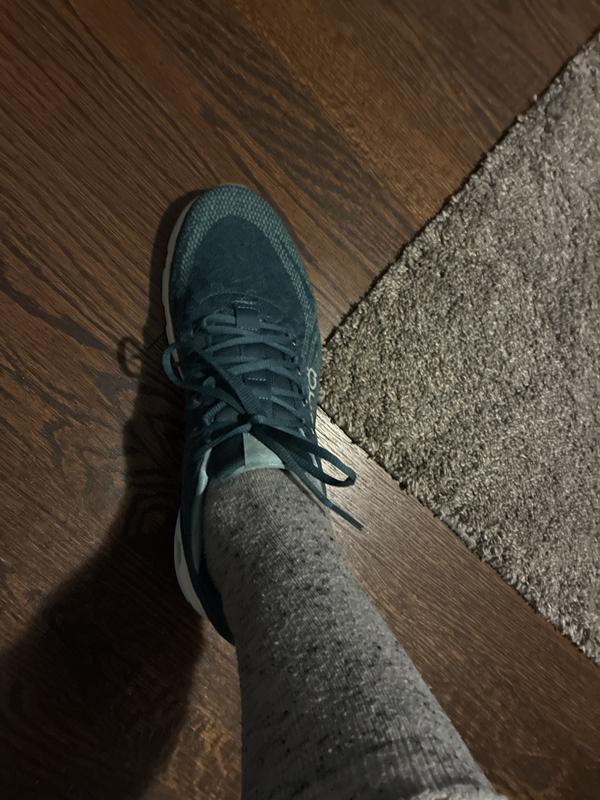 This shoe fits well and very comfortable from the first morning walk. Good cushioning.