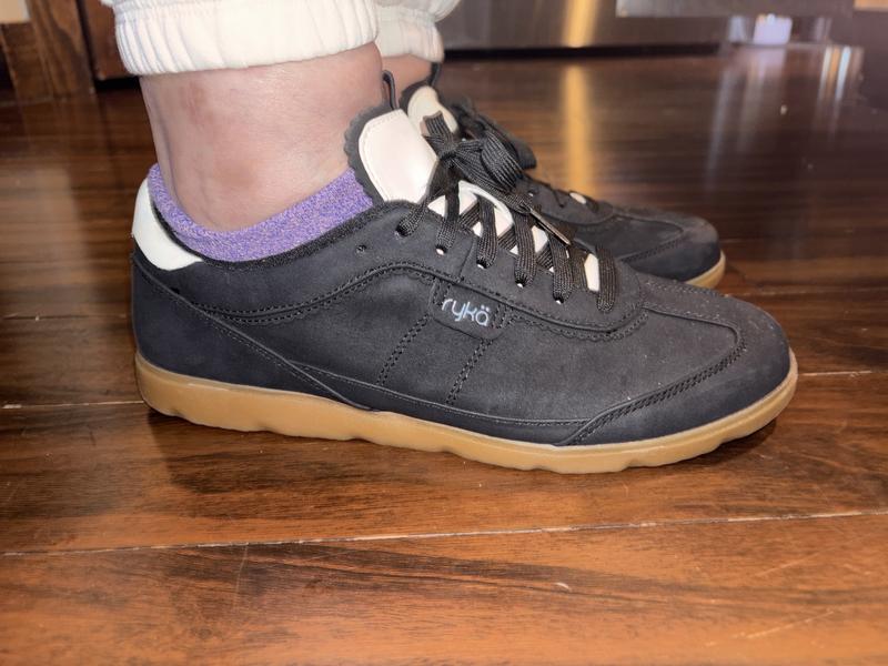 These are very nicely made and look good. I love the fact that the sole is not white. However, the problem for me is that they are too snug in the wrong places. I have been a Ryka sneaker wearer for about 20 years and this is the first time that my feet felt uncomfortable in a pair of Rykas. They will be returned.