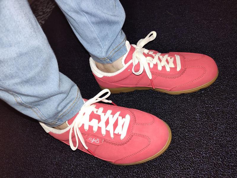 Was really disappointed, Ryka is my favorite brand but these sneakers slipped off my feet as I tried to walk in them. The price was great, delivery excellent. Bought my usual size 8W but the width was too generous.