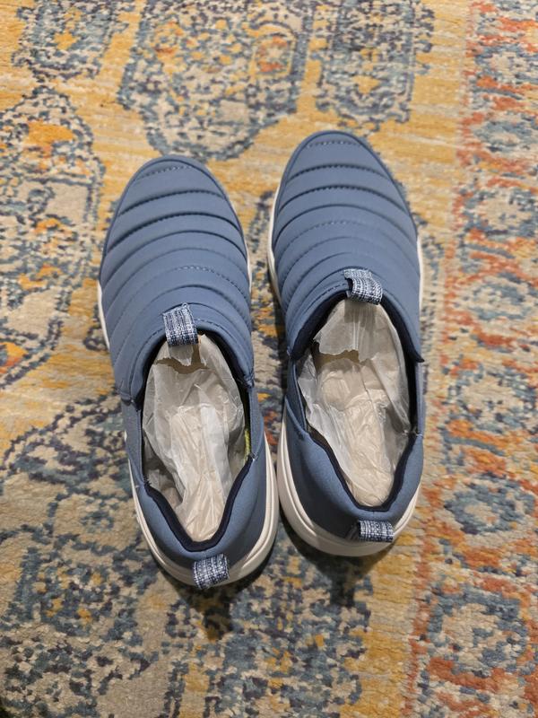 This slip on fits my foot really well, has a good sole- not too thin, and easy to slip on without hands with a snug heel. Arch support is good too and toe box nice and roomy. Love the color- sea green. Perfect for slipping on quickly to grocery shop, out to lunch, general running around. I may buy another pair in different color. Good price.