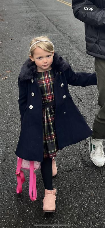 We have been familiar with Rothschild coats for years as I had one when I was a little girl. My daughter loves everything about this coat- especially all of the attention and compliments she gets when she wears it. She feels like a princess in it, I’m sure. The fur detail around the collar elevates this look even more. The only complaint I have is that everything sticks to this coat. I would recommend having a lint roller nearby but don’t let that discourage you from buying it. This coat is well worth it.