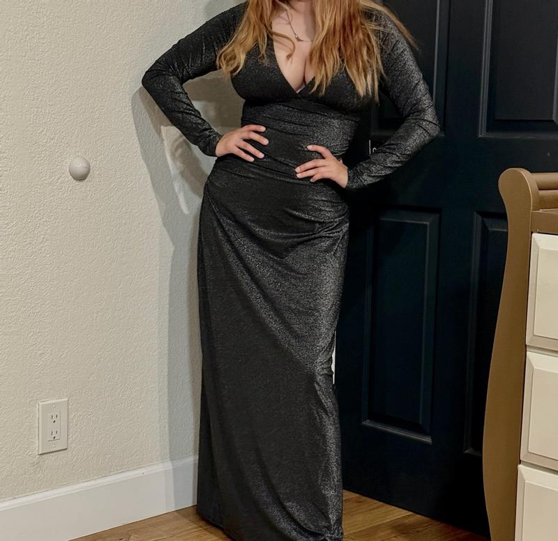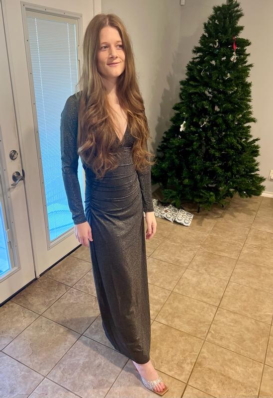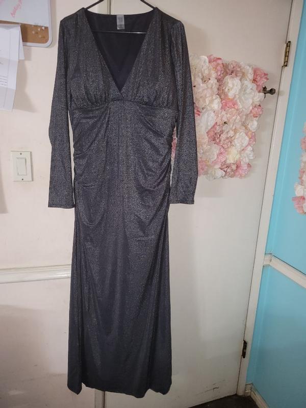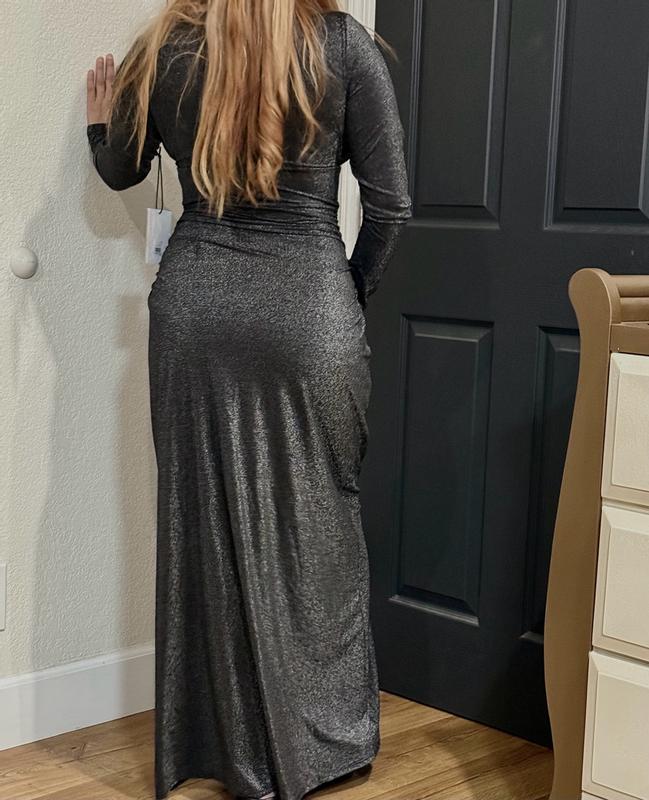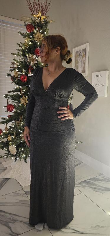 Women's S3 Sculpting Shapewear Shirred V-Neck Long Sleeve Metallic Maxi Dress