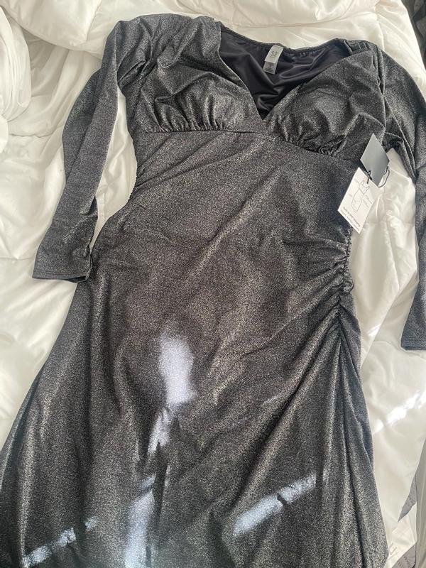 Beautiful dress good size , love the color , black metallic perfect for this holiday , the size was perfect , the fabric is so soft , love this , how the body feels so nice