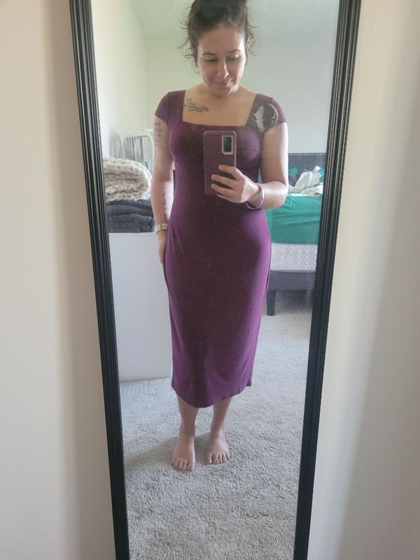 I got the Women’s S3 Sculpting Shapewear Square Neck Cap Sleeve Solid Midi Dress in Cherry Mocha (size XS). The color is a deep, rich wine shade that looks elegant and classy. The material feels soft yet supportive, and the built-in sculpting design really smooths everything out without feeling too tight or uncomfortable. It hugs my body in all the right places and hits just below the knee, which makes it great for both date nights and semi-formal events. The square neckline and cap sleeves add a really feminine touch.