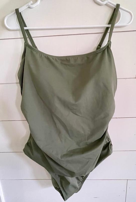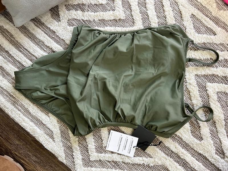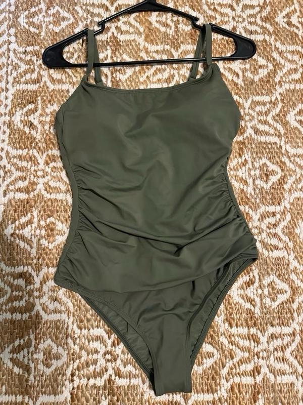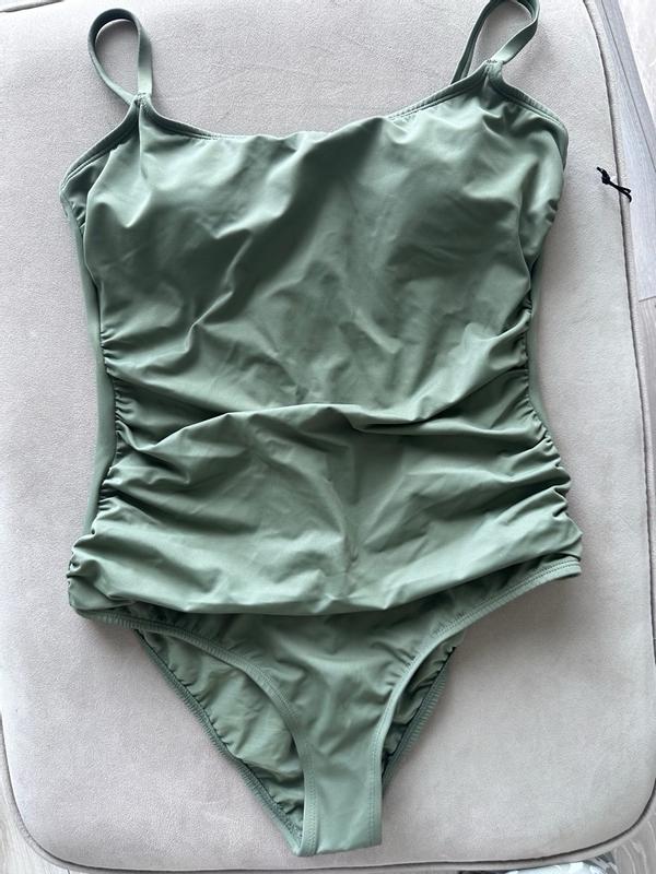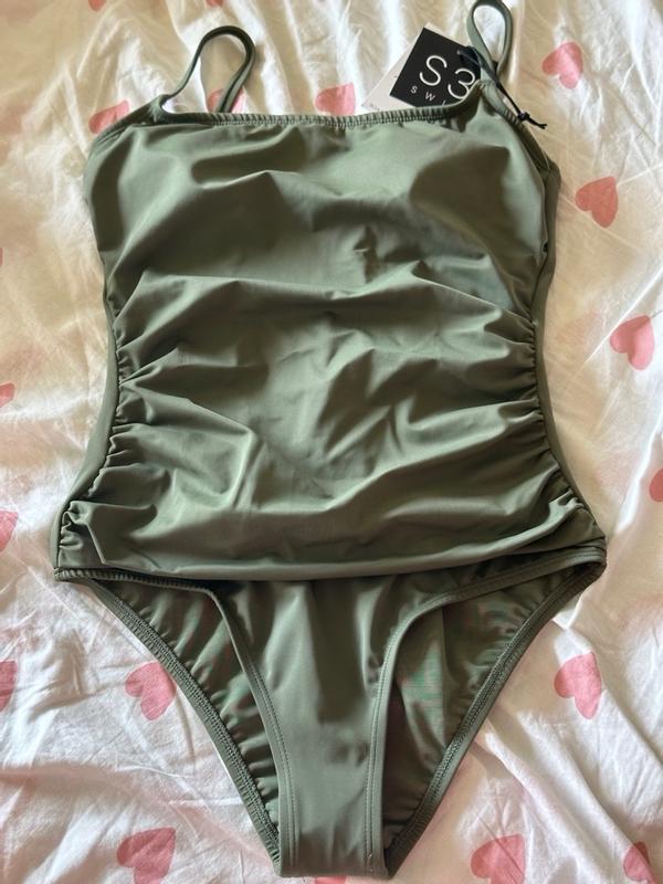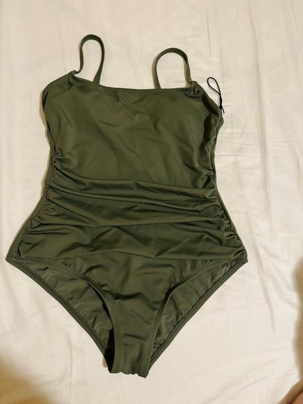 Wow! I love this swimsuit. It’s super comfortable and has a good amount of stretch and the material is durable. It fits well and the color is a nice shade of green.