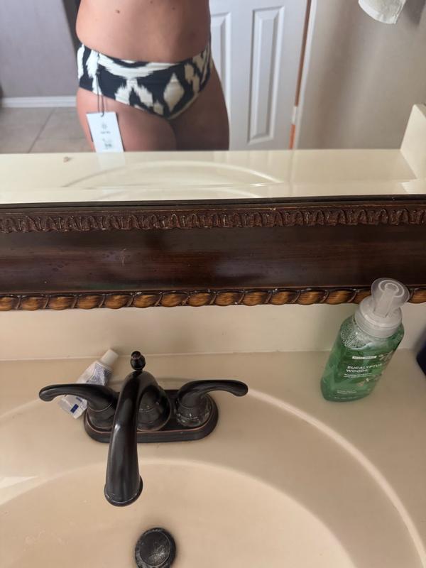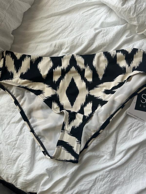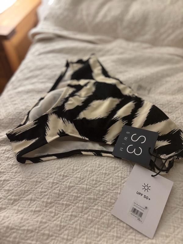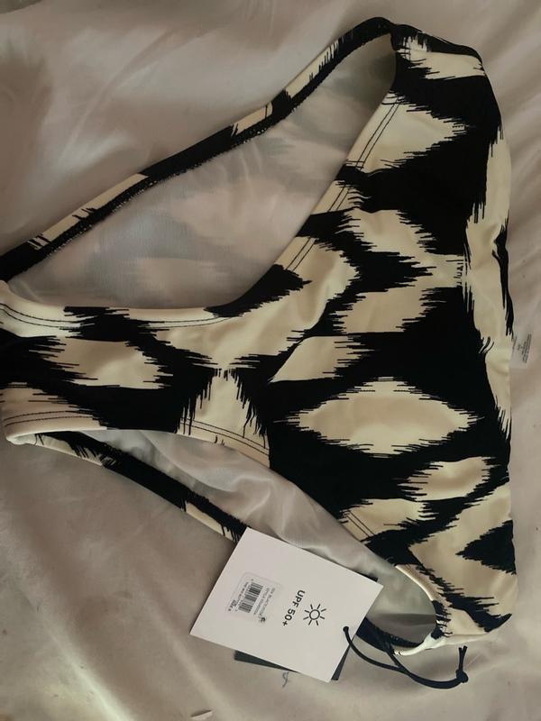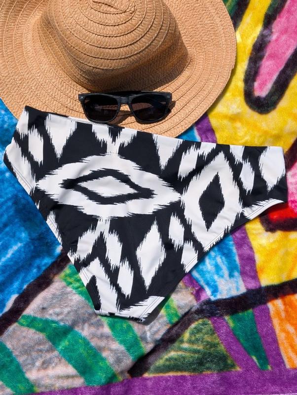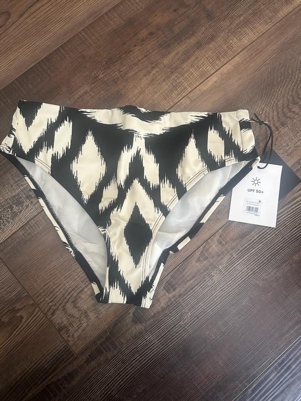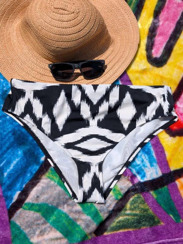 Cute and comfy swimwear! I do feel they come up a bit higher than typical mid rise, but I like that. They are comfy and not too cheeky. I love the pattern because I can match it with a plain black top. They’re comfortable and don’t shift around. Cute!