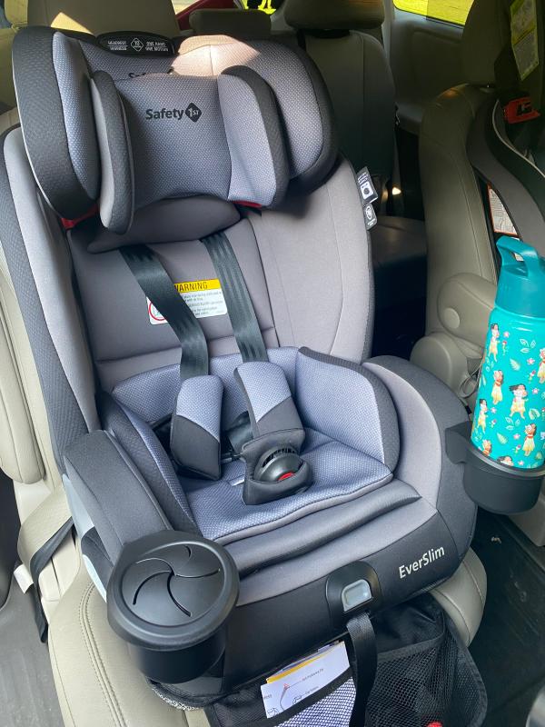 I really like the EverSlim All-In-One Convertible Car Seat. It is compact but still plush and comfortable for my little ones who are still rear facing. In comparing it to another "slim" car seat by a well-known brand at the same price point, the EverSlim definitely takes up less room and is way more comfortable for my little ones. I like the magnet connection at the chest plate and that the buckle is easy to use. The straps are easy to maneuver and adjust. As a twin mom, ease of use is something I value as we have to do everything twice!