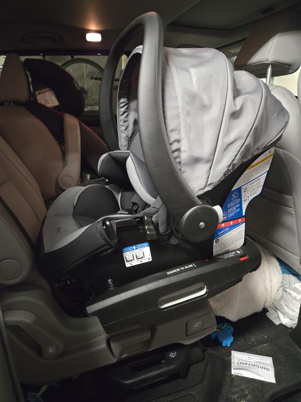 I received this infant car seat from the Stellar Product Testing Panel. The first thing I noticed was that the seat was very securely packaged in its box. I’ve seen a lot of seats that just sit in a big box with lots of room to bump around. The car seat base is hefty. It’s not a base that’s easy to carry from car to car. But the install of that base was so fast and easy. Using either the LATCH or seat belt install for the base seemed almost full-proof. With LATCH, the base slides side to side a bit, which is the nature of rigid LATCH attachment, but something that you need to get used to. The seat belt install is tighter and doesn’t slide at all. I really appreciate the tension indicators for the seer belt install. It leaves no room for a difference of opinion of the belt is tight enough. I actually installed the base faster with the seat belt. Unfortunately, the slide feature didn’t fully work in my car because of the shape of our back seat. I suppose it could be helpful if I had to place the seat in the car from the opposite door. The only cautions I have for the seat come from a few requirements that are listed in the manual. The first is that the car seat handle must be upright when the seat is installed. Also, the seat must touch the seat in front of it (driver’s or passenger’s), or be as close as possible. That can limit the cars in which this seat can work. Also, how close is considered “as possible?” The barse also must be completely flat on the car seat, which can rule out middle seats with a jump. I still think it’s a great seat, especially for first time parents who aren’t experienced in car seat installation.