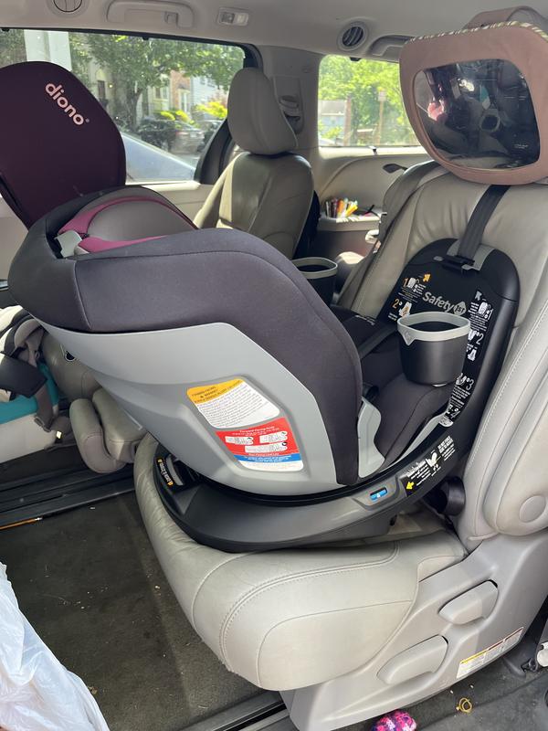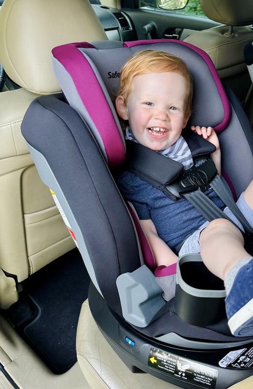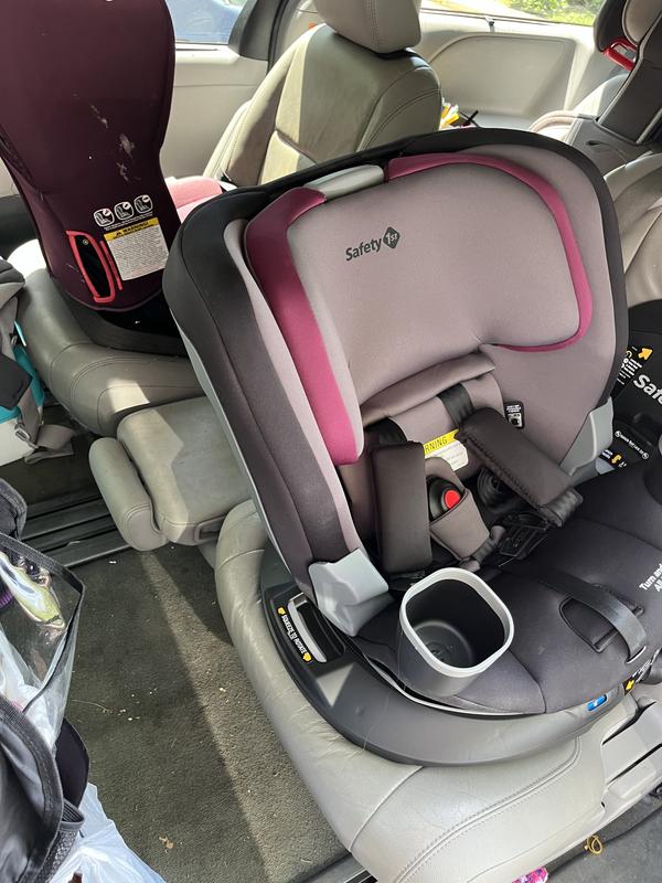 Thanks to the Stellar Product Testing Panel for letting me try out and review the Safety 1st Turn and Go 360 AIO Car Seat. I have a lot of mixed feelings about this car seat and I’ll tell you all about it. I received this car seat a few days before my daughter’s 2nd birthday (and turnaround to forward facing) and about a week and a half before a long cross country road trip so basically it was the best timing ever to try out a new car seat. Setting up and installing the seat took a while for me. It works differently than other car seats that I’ve used because of the turning feature and it too me a bit to understand how to get it right. Off the bat I didn’t love how wiggly the seat still felt after it was properly installed. The base was very solid but the place where the seat attaches is secure but wobbly because of the turning function. My daughter started off backward facing. I loved the ability to pivot the seat to face me to get her in and out. Makes it SO much easier. I imagine this would be even more helpful the younger the baby is since my toddler basically springs herself out of her seat as soon as it’s up clipped these days. On her 2nd birthday it was a fun little moment to simply turn her the other way to face forward rather than having to completely uninstall and reinstall the seat. Other features I love: -Cup holders are removable and also very large. Other car seats have a hard time fitting our Camelbak water bottles but these are super large and cups come easily out. I like that I can take the entire cup holder out to wash it. -Seat is big and comfy. She stayed very happy in the car for 14 hour drive across the country without that many breaks. -During our trip to visit family we had a moment where I needed to pick up our cousins’ babies. One was rear facing still but it was breeze to simply turn the seat around rather than having to uninstall and reinstall the seat twice. Things I don’t like so much: -the straps are kind of hard to adjust. The button between the knees is tough to push and for some reason it takes some real muscle to loosen and tighten the belt. -the shoulder pads are LONG and not removable. I think they are a little too long, which makes ensuring that the chest clip is up high enough a little challenging. Hard to imagine getting it in the right spot on a newborn. -this car seat is BIG and HEAVY.