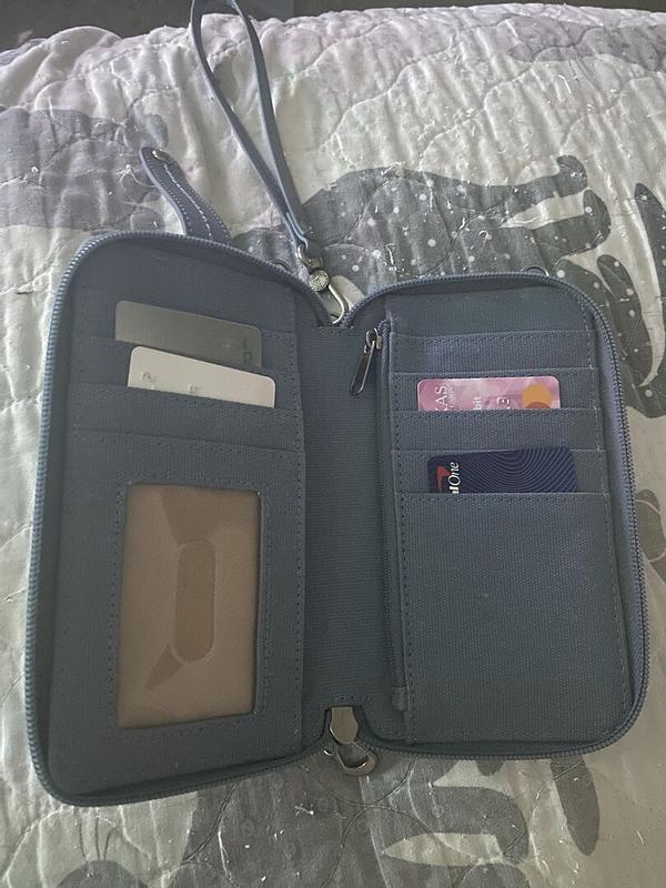 Love this wallet, holds everything needed for a day out on the town. Plenty of storage for cash,credit cards, license, and phone. Love the accessories, can be worn on the wrist, or on the shoulder,strap long enough to wear cross shoulder.
