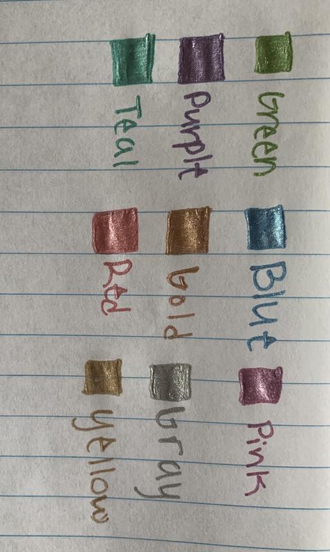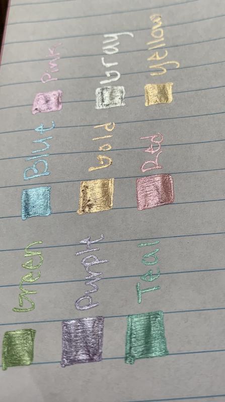 Me and my daughter both love all the different colors that come in this set. It says that they are for darker paper, but they work on regular paper as well. I want to get more colors just like these to use. Definitely recommend this set of pens if you like sparkly colors.