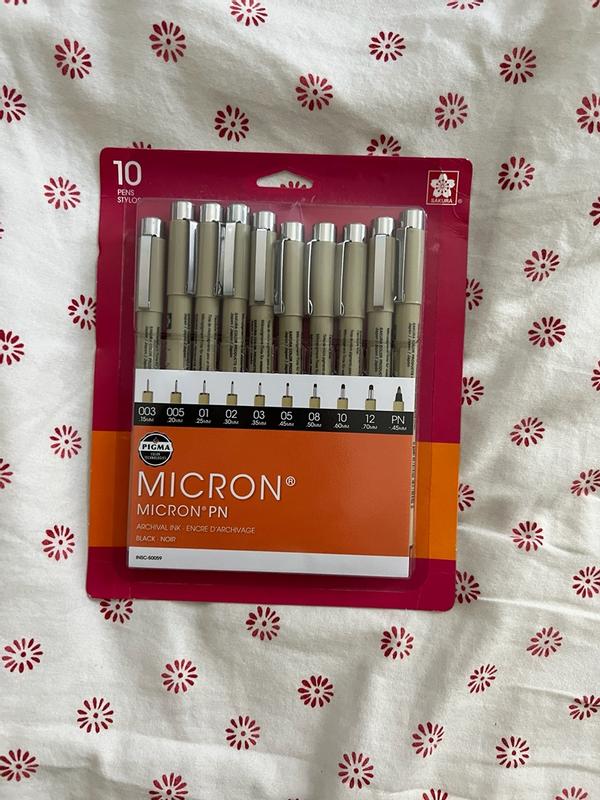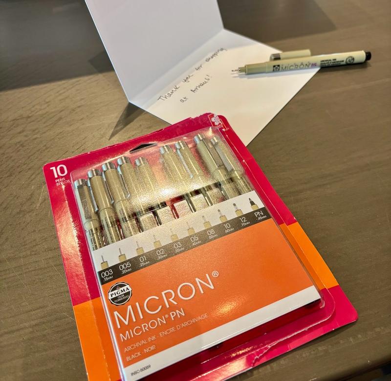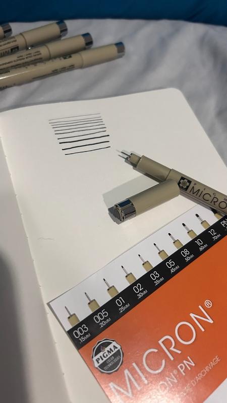 I love Pigma Micron pens—they don’t smear and come in great size options. They’re perfect for lining and adding tiny details to my art. The PN size was new to me and I was surprised at how fine it was (felt similar to an 02). I usually prefer a thicker line for writing, but if you like a thinner weight and tend to smudge ink, the PN is a great pick!