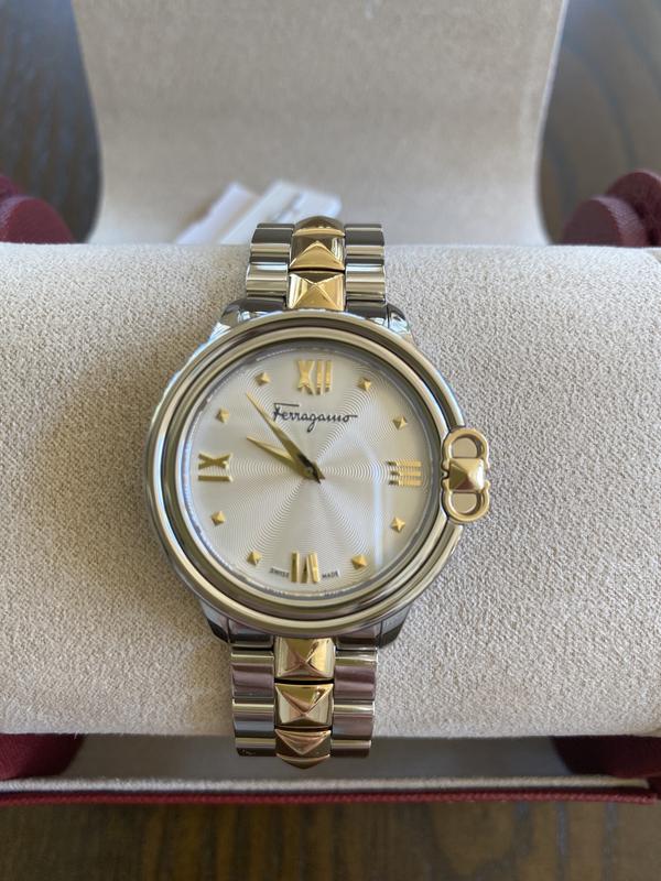 Web ID: 13807468The Studmania watch is a glamorous timepiece, enriched by a bold bezel adorned with the iconic double Gancini symbol. From Salvatore Ferragamo. Style #SFMJ00522