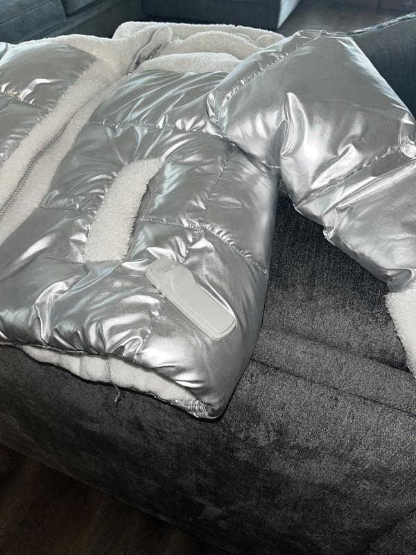 Sam EdelmanBig Girls' Metallic Mixed Media Puffer Jacket