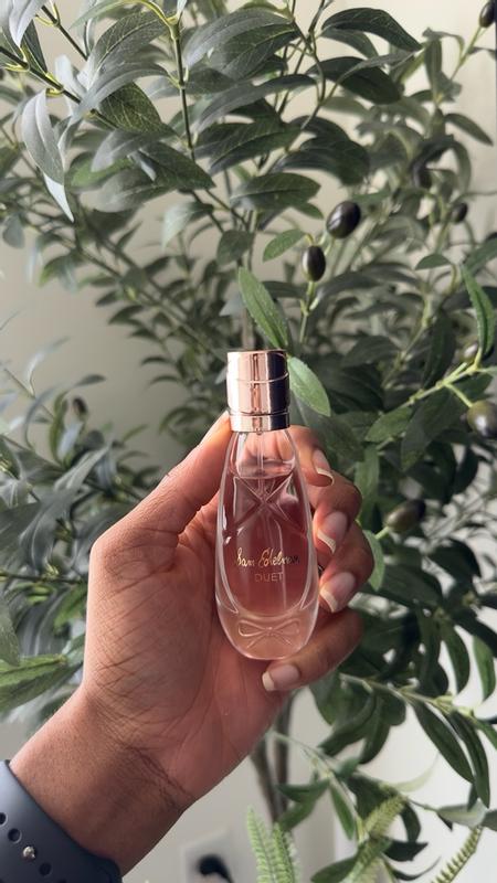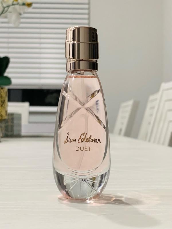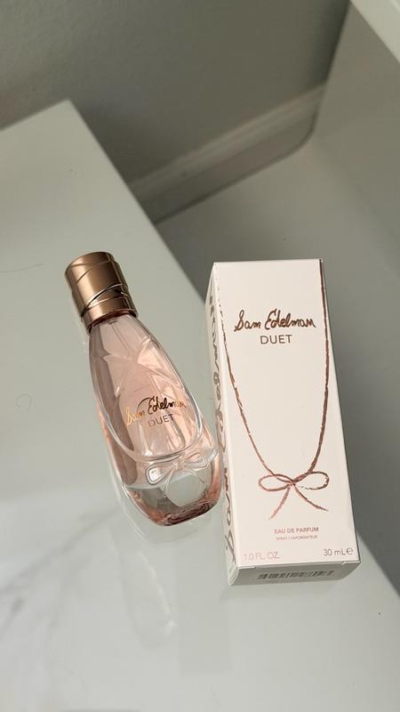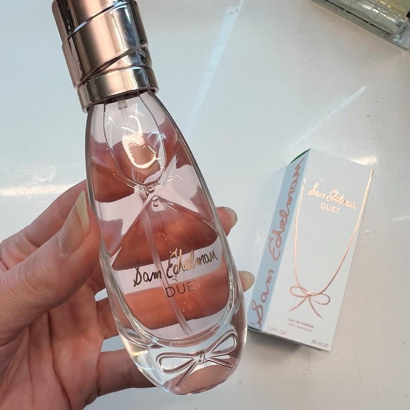 A very cute bottle. Scent that is Soft, cozy, and a little addictive 🤍 Sam Edelman Duet is the kind of perfume that feels like a warm hug with a chic twist. It opens fresh and subtly sweet, then melts into the prettiest soft, feminine notes that linger all day. Effortless, elegant, and perfect for everyday wear — I keep reaching for it. 🌸✨