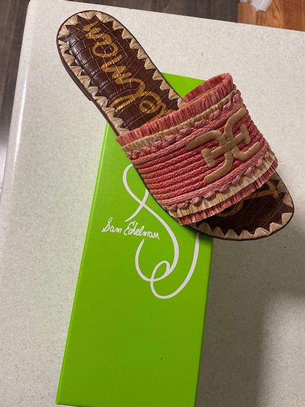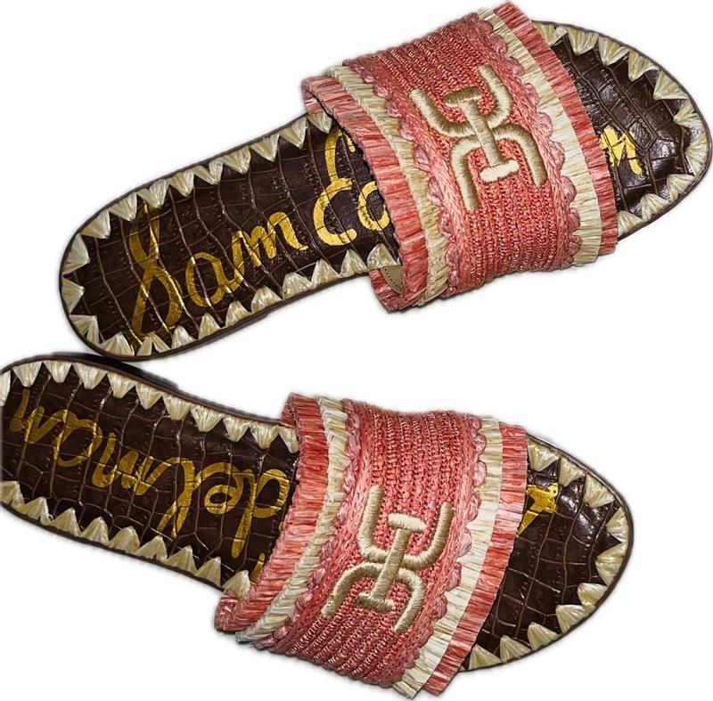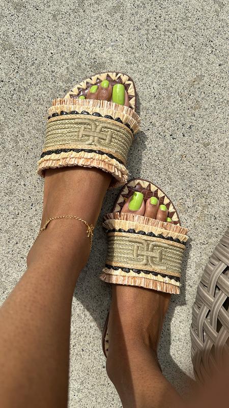 These sandals are beautiful and wonderfully made. The color raffia is made in a shade of Orange that I can wear with a lot. I'm a size 9 medium for reference and the show fits true to size.