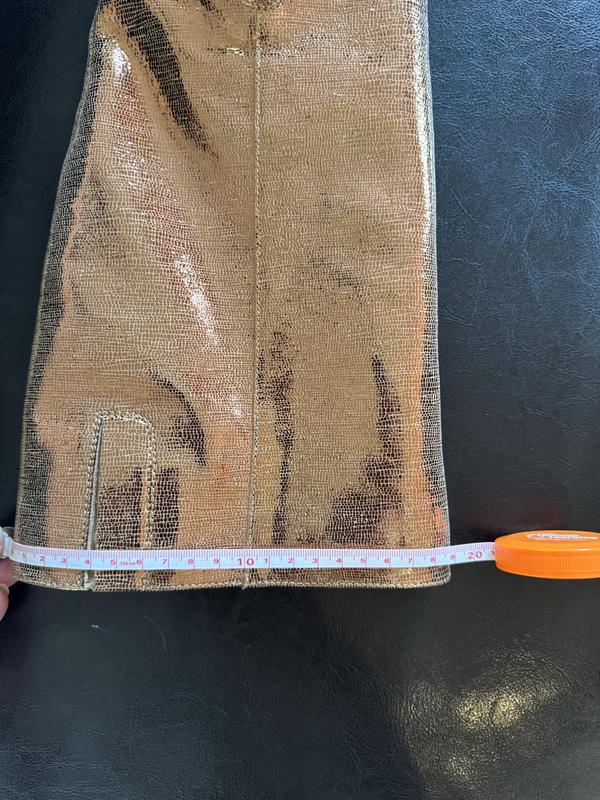 Boot is beautiful. Love the heel height and shape, and the overall style. Unfortunately, the boot shaft height is too tall for me. I am 5'4" tall, standard proportions, and wear a size 7. The boot shaft hits my knee in the front when standing, and jabs/bends into my knee when I try to bend it. The shaft would need to be 1.5 inches shorter to fit how it is supposed to. These boots are beautiful, but are not made for someone under 5'7". Please make these in a "petitie" shaft!