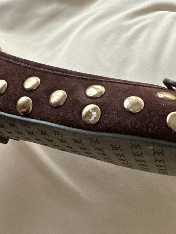 We are sorry this is happening to your Alie Studded Ballet flat. Please call our Sam Edelman Consumer Care Department at 1-888-889-9609. The Call Center hours of operation are Monday-Friday 9:00a.m.-6:00p.m. and Saturday 10:00a.m.-5:00p.m. CST. Thank you!