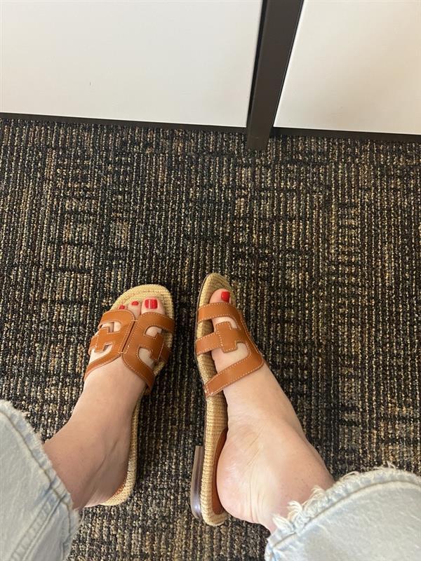 Not only a beautiful sandal, but also very comfortable. The fit is true to size and the non-slip grip reassures that I can wear them anywhere and on any surface. Beautifully made and great quality leather.
