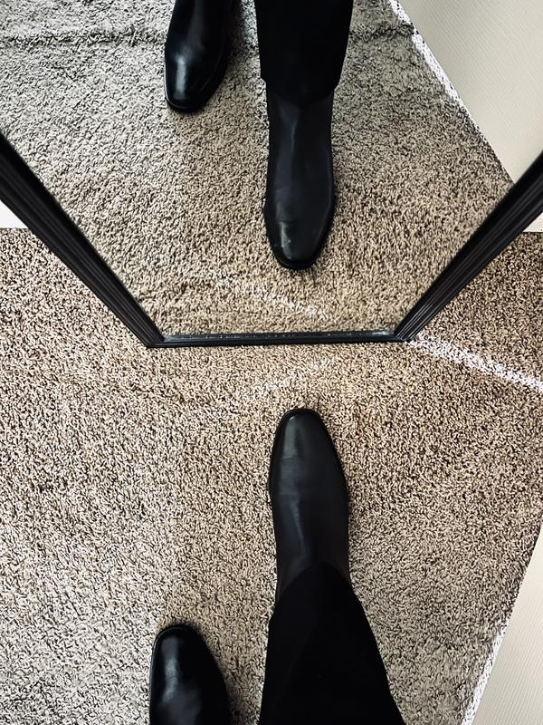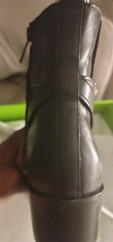 1. The gold logo on heal as shown is not on the boots. Kind of took the dressyness away. 2. Ordered them for a nice sleek understated dress boot. They have hard leather and are bulky 3. Super disappointed in this purchase!!