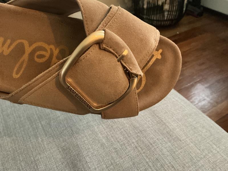 The crossover/buckle part is so loose my feet slip right out! Have to return- super disappointing because they were soft and comfortable. Would’ve been the perfect sandal.