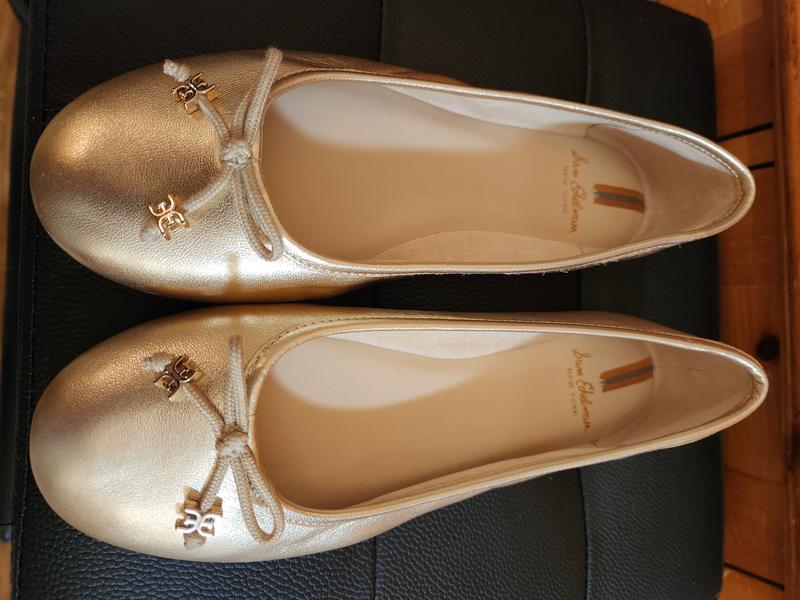 The Sam Edelman-Felicia Luxe Ballet Flats in gold color are so comfortable. You can wear these shoes in any situation- to dress up or to just hang out. Does not slip off the back of your heel like some of the ballet flats. I highly recommend!!