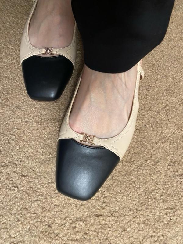 Love this sling back For day or evening. It adds a pop of color to any outfit !!