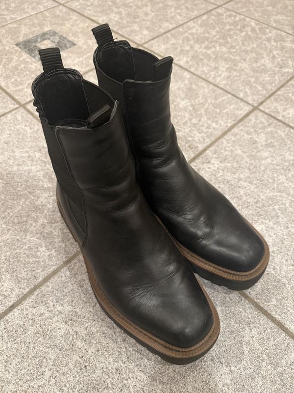 I get so many compliments on these boots. They are stylish and go with so many things. Not comfortable in the beginning but once they are broke in they are quite comfortable. I would buy these boots again except for the longevity of the sole. Today I wondered why my foot felt wet. I looked at them and found a huge crack in the sole. Super disappointed because I paid a lot for these boots for less than a year’s occasional wear.