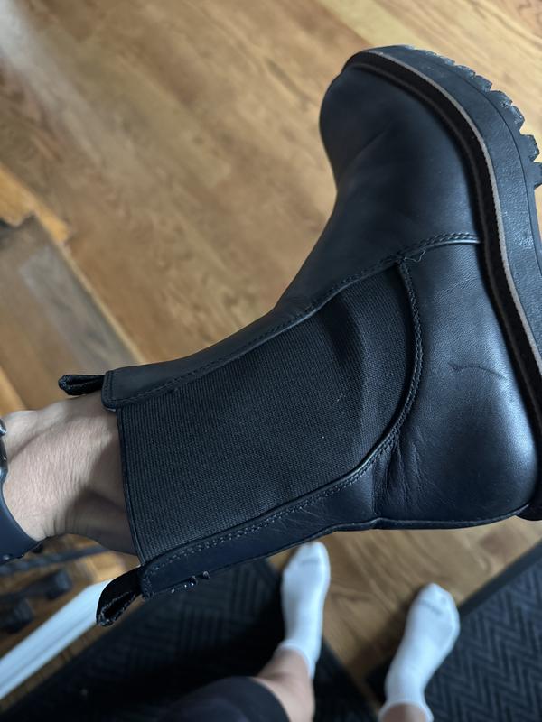 The Sam Edelman Women’s Laguna Lug-Sole Chelsea Booties are pretty, but they are unfortunately very uncomfortable to wear. This is the first time I have ever been disappointed by a Sam Edelman bootie fit, design, and materials. I have a narrow foot and ankle and usually wear a true Size:7. I had to return the 7 for a 7.5 thinking a half size larger bootie would improve the overall fit and comfort, I was disappointed again, after wearing the 7.5 size bootie for an hour, because the interior materials were rough and caused blisters to form on my heels and outer toes. The boot is overall too stiff and tight, difficult to get on, rubs the heels and toes, and pinches the outer toes even though the toe box is a square-toed design. Each Fall/Winter season, I usually purchase 3-4 of the Sam Edelman platform booties, because they’re like walking on clouds, comfortable, and well made. Sam Edelman Company needs to go back to their 2023-2024 platform bootie designs, sizing, and materials.